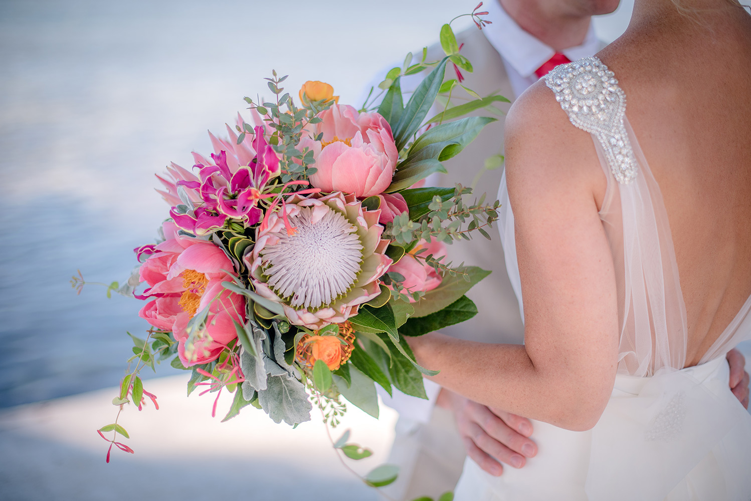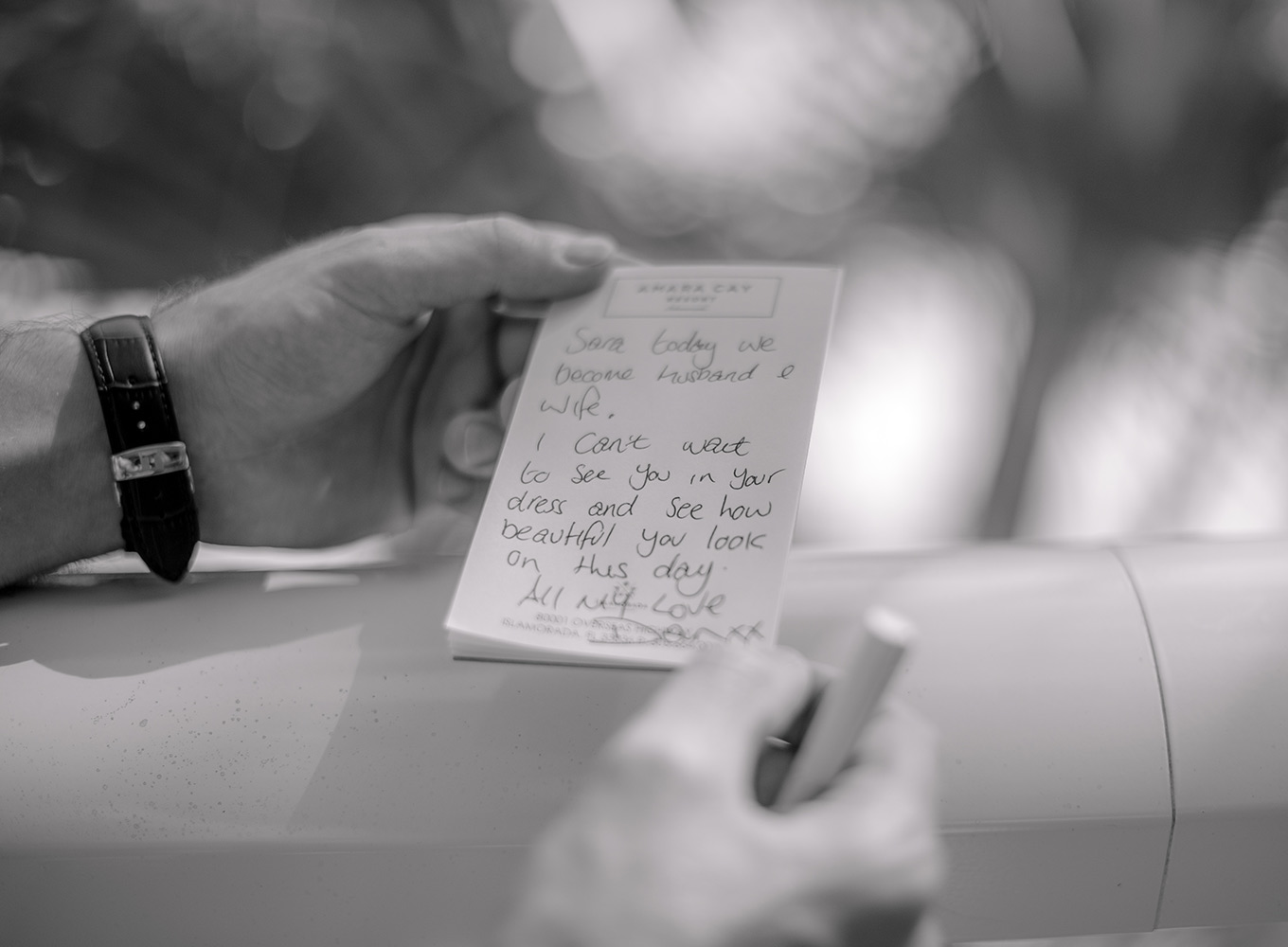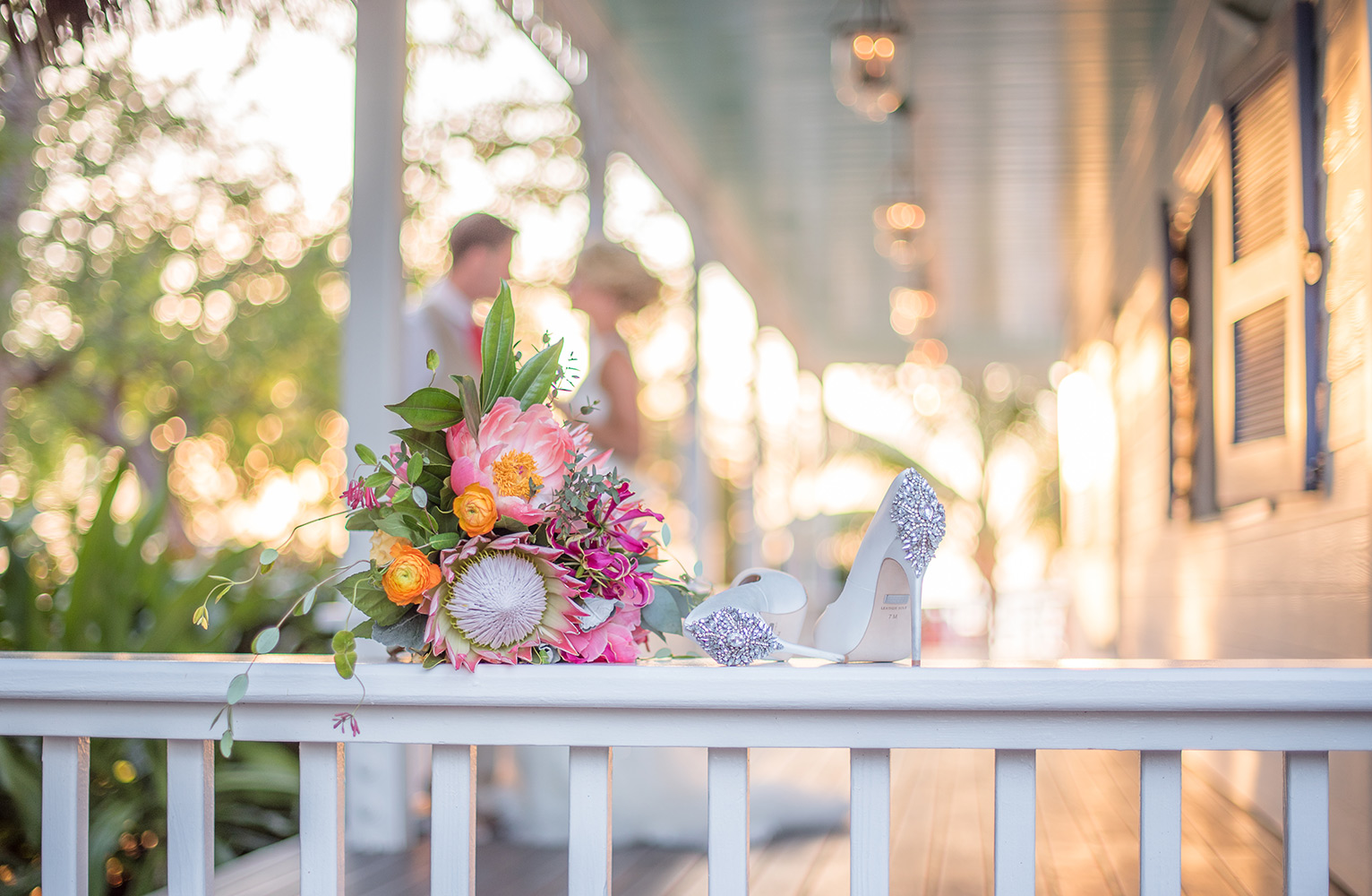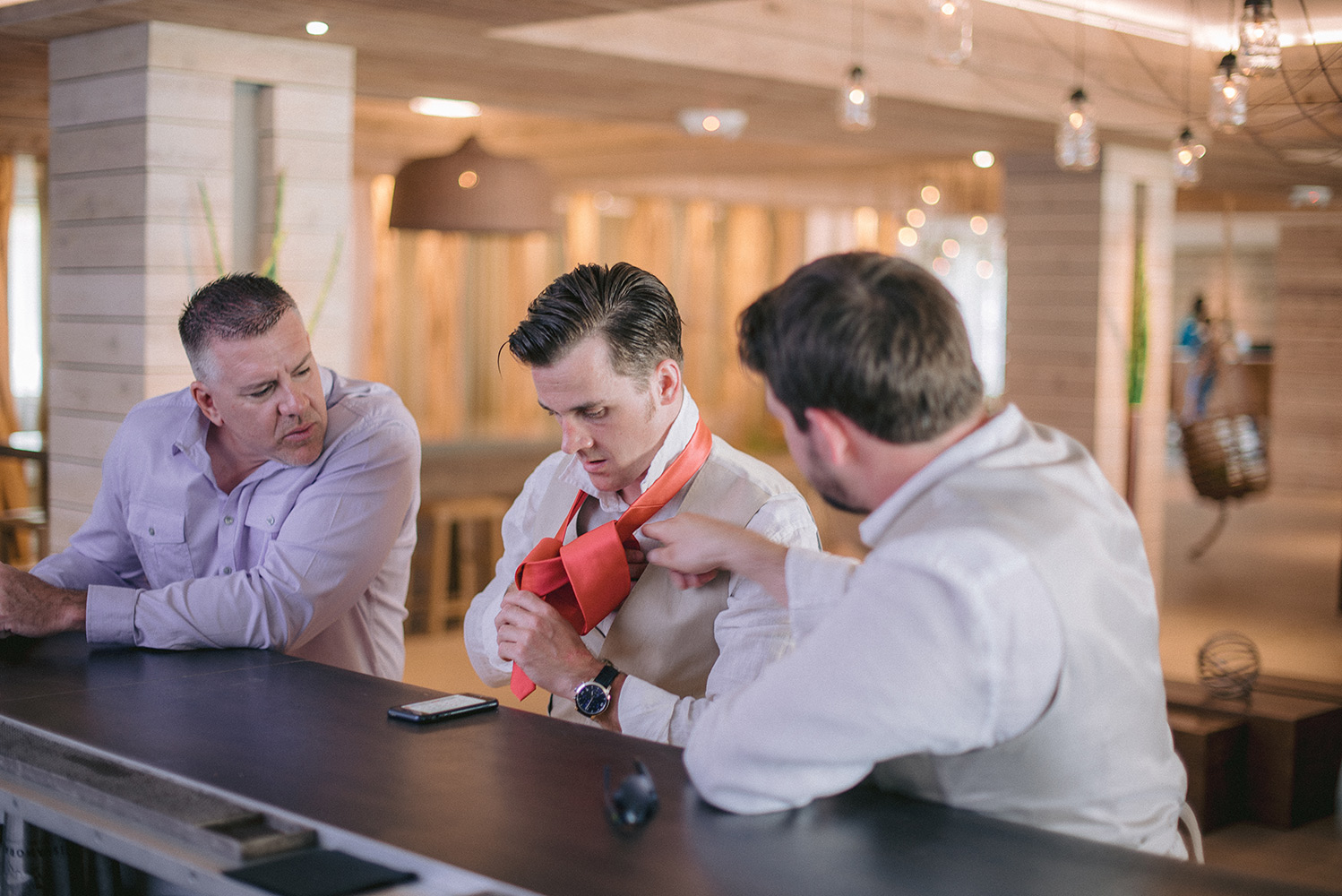 Sara & Daniel traveled all the way from the UK for their dream wedding in the Florida Keys. We met up with the bride and her girlfriends having a great time in the bridal suite at Amara Cay overlooking the beautiful Atlantic Ocean. The girls were sipping champagne upon our arrival, as we started to photograph her wedding day. We met Daniel & the guys downstairs in the bar as he was googling how to tie a tie and got a few fun shots. Then we were off to the beach for their first look. When Daniel turned to see his bride in her wedding dress, she took his breath away. Their ceremony venue was the beach at Pierres right next to the iconic bent palm tree overlooking the Gulf of Mexico, the best spot in town to watch a sunset.